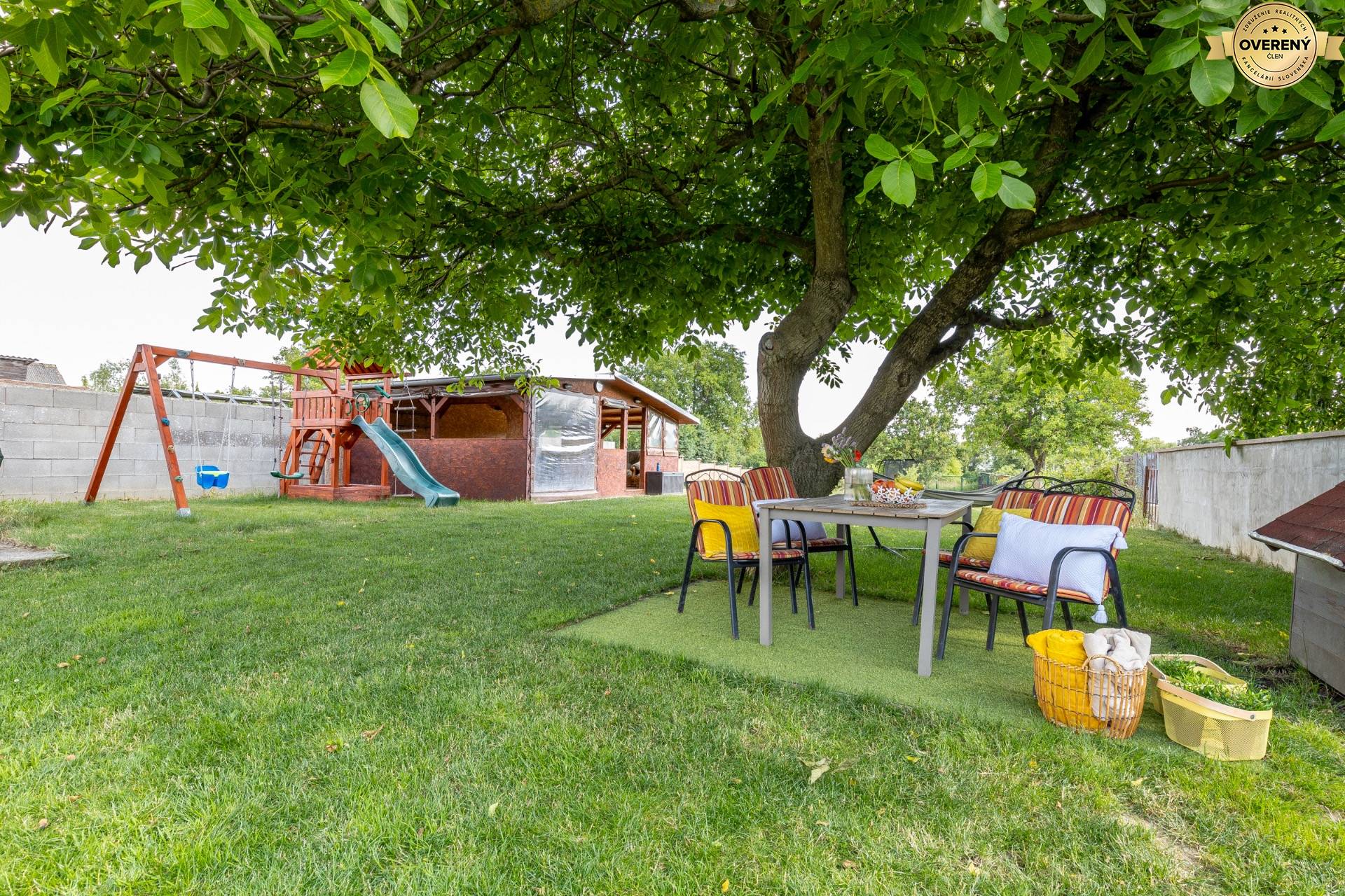 Jedným z najväčších benefitov tejto nehnuteľnosti je krásny, slnečný pozemok s výmerou takmer 1360 m², ktorý ponúka priestor na oddych, rodinný život aj realizáciu vašich záhradných plánov. Dominantou záhrady je majestátny orech, ktorý poskytuje prirodzený tieň a vytvára výnimočnú atmosféru v prednej časti pozemku. Pod jeho korunami nájdete miesto na hojdaciu sieť, altánok či letné posedenia pri grile.