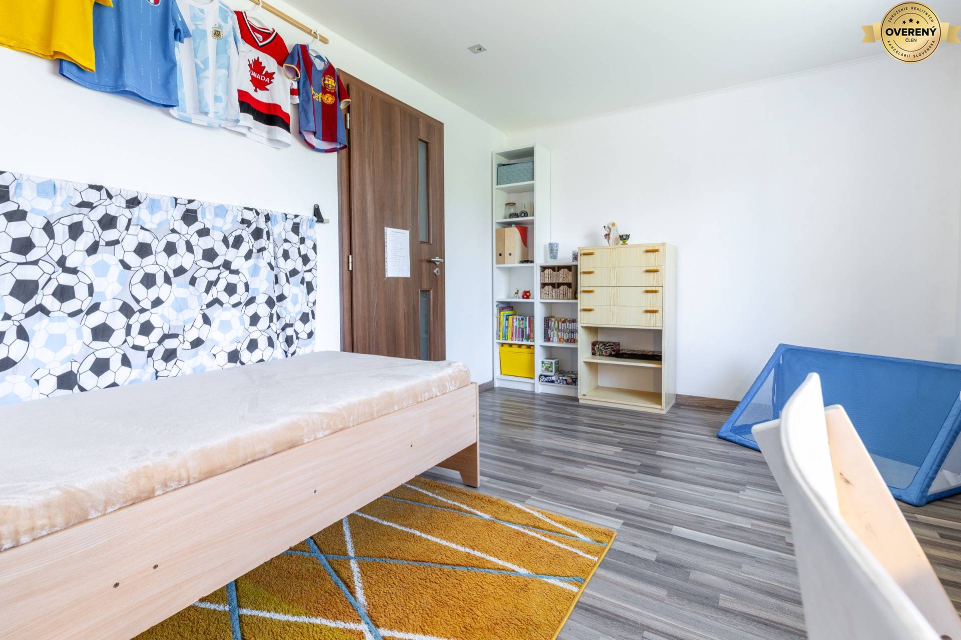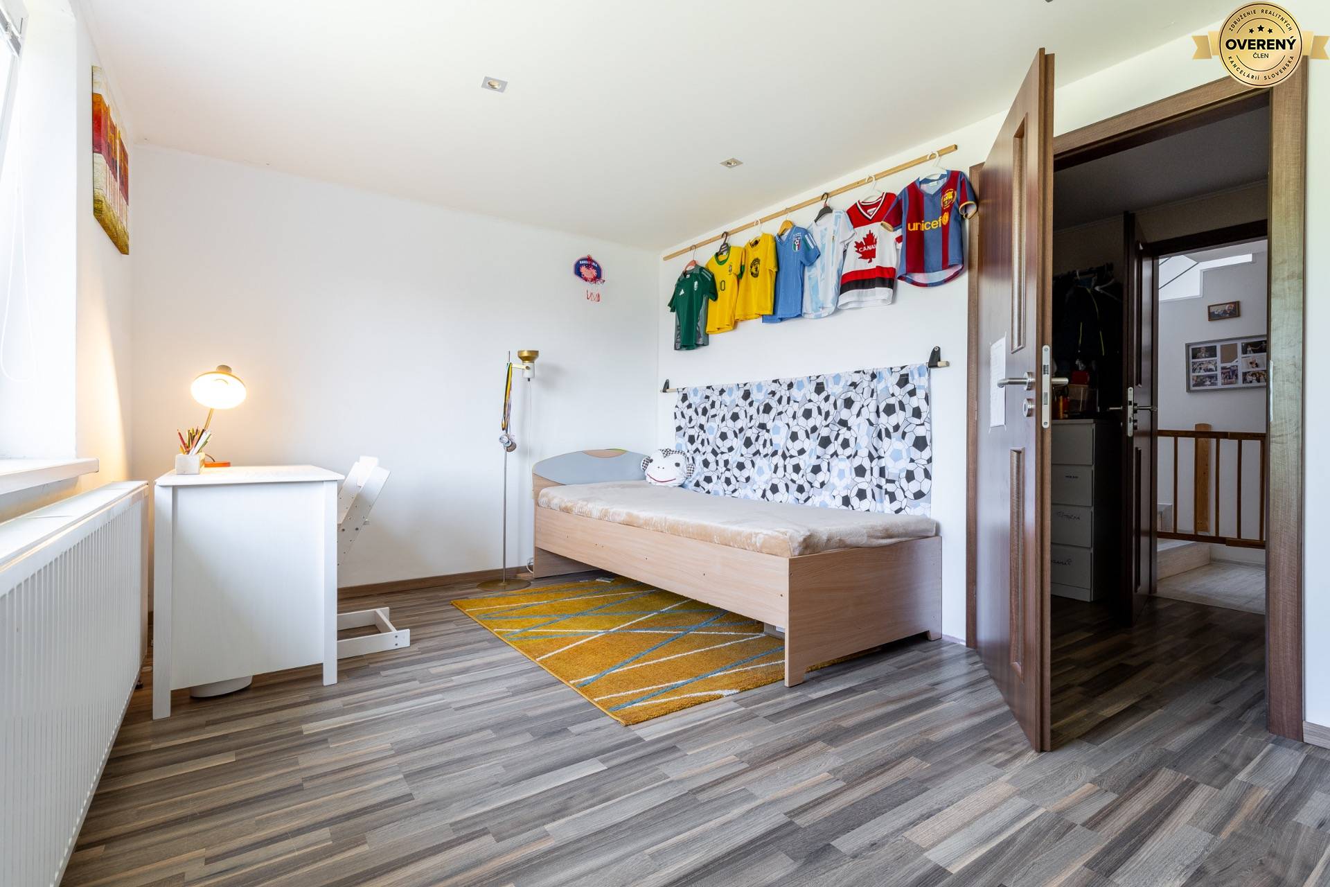 Izba pri schodisku ponúka ideálne podmienky pre detskú, študentskú alebo hosťovskú izbu. Vďaka jednoduchému a čistému dizajnu pôsobí vzdušne a zároveň útulne. Veľké okno zabezpečuje dostatok denného svetla počas celého dňa, čo vytvára príjemné prostredie na učenie, oddych aj hranie. Pridanou hodnotou je prechodový šatník s dverami, cez ktorý sa prechádza do izby a ktorý poskytuje množstvo úložného priestoru bez potreby ďalšej nábytkovej zostavy. Tento praktický detail ocení každý, kto má rád poriadok a organizovanosť.